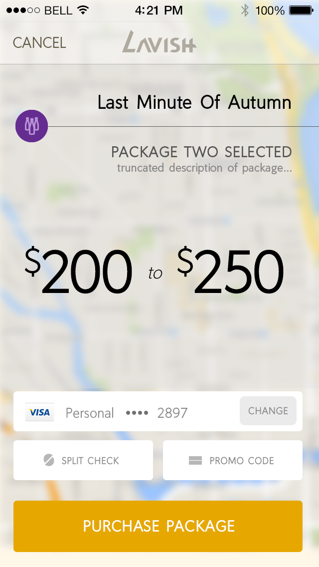 Taking a design inspired by Uber, Lavish aims at providing users access to nightlife events in their locality. Users can view nearby nightlife events on a map and purchase tickets, cover and bottle services before they arrive.