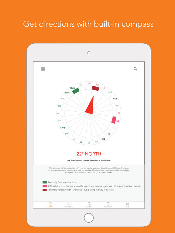 • Custom built feng shui compass powered by Location Services